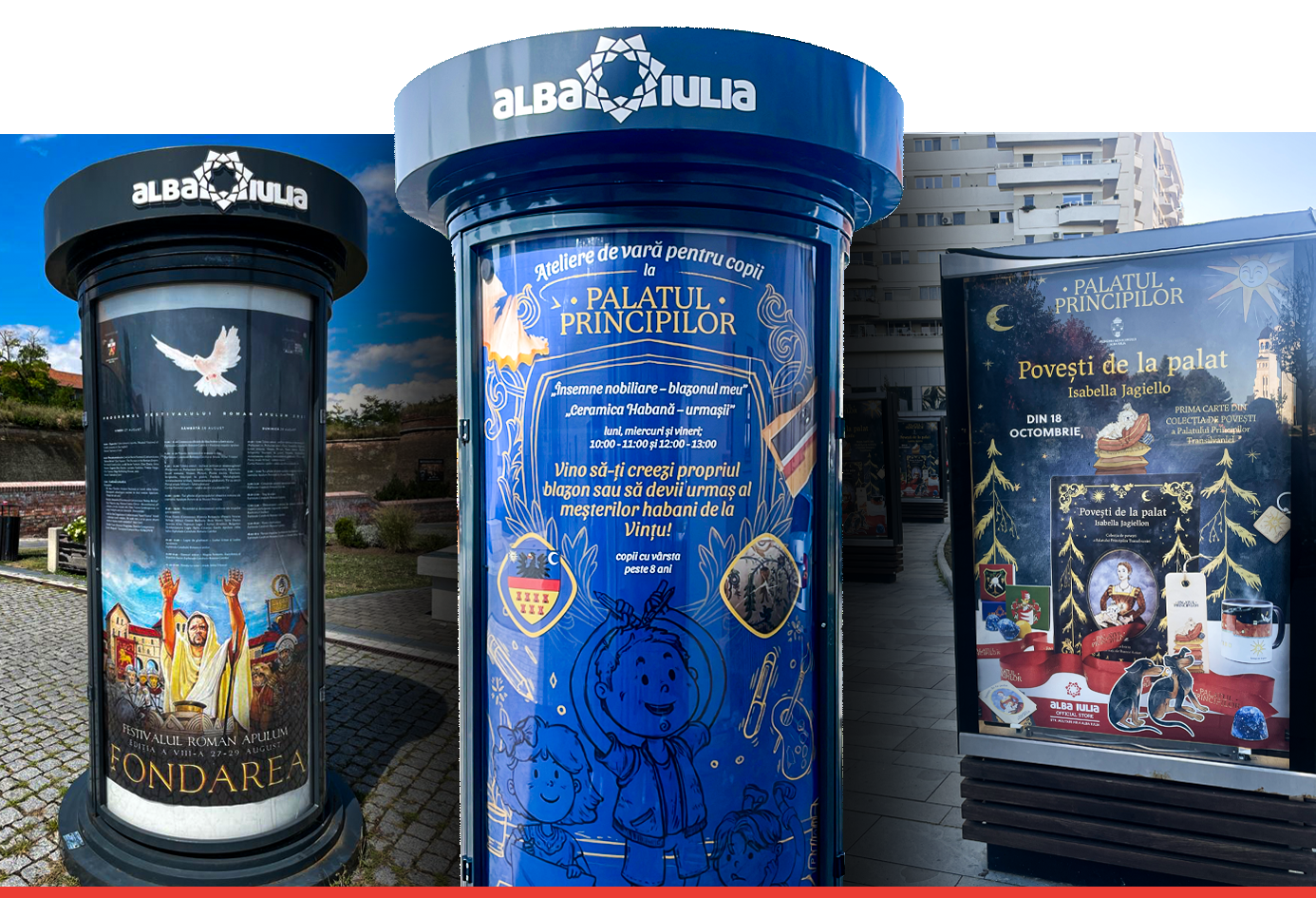 Câteva dintre materialele de promovare create de mine în zonele de afișare din Cetatea Alba Carolina.